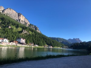 I struggle hugely over the next 4-5 miles to an intermittent checkpoint at Lake Misurina where I get a phone call. This cheers me no end and finally I’m not struggling against sleep. But I’m so slow now. I’m pretty much broken. Somewhere further back it got cold again and I only put my waterproof jacket on. I’m still freezing as I walk, no energy to stop and dig out the other top. It’s frustrating to see the sun yet be moving constantly in the lee of a mountain or inside woods. But I knew soon enough I’d be in the sun.